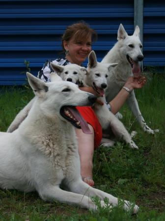Наверное многие из теперяшних заводчиков начинали своё общение с собаками с немецких и восточно-европейских овчарок. Я не исключение. В небольшом Карельском посёлке,где я выросла это были самые распространённые породы, не считая карело-финских лаек и всевозможных гончаков. Но и овчарку заиметь было проблематично и дорого. Купить можно было по великому блату в военном питомнике, т.е "на зоне" А теперь глаза разбегаются от всяких экзотических пород. Но не смотря на это многие предпочитают "классику": немцев и ВЕО. В этом плане интересным компромисом может стать Белая швейцарская овчарка. Вроде и классическая овчарка и в то же время экзотического белого цвета. Впервые представителя этой породы я увидела приехав в гости к коллеге по обьекту.(вместе работали кинологами в охране). Кобеля он купил в Чехии щенком. Потом дела закрутили и пёс просто радовал семью. Мы решили это дело исправить и стали возить Алтая (Бальтазар Халит Пашу) на выставки. Алтай стал Чемпионом России. Был неоднократным призёром и победителем Бестов. Но меня он подкупал отменной психикой и работоспособностью. В этом плане Алексей с ним много занимался и результатом стали ОКД-1 и ЗКС-1 Помню как-то на работе я умудрилась потерять ключи от калитки между обьектами.За неделю на обьекте так устанешь,что и не на то способен. К счастью со мной был Алтай. ,Он нашёл маленький ключ в весеннем снегу(вернее в месиве из снега). Вот такой он умница. |